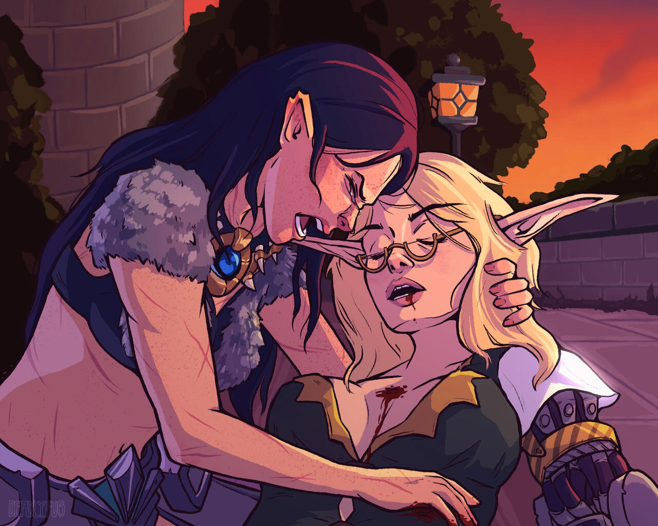 While her Amani captors had no love for Pet or her people, they seemed to revel in her presence. Especially Zorabrul. Perhaps it was that they viewed her as a trophy? A sick prize to hold over the Quel’dorei that they loathed so heavily. Or maybe there was more to it? Unknown to many, Zorabrul had, from the day he decided to keep Pet, taken a liking to the taste of her blood. She had no idea why he enjoyed it so much, but it had become a daily ritual for him to slit her skin open somewhere on her body, and lick the slice clean. Pet wondered if one day he’d eat her entirely, but for now, it seemed a few drops a day was enough to sate his thirst…
